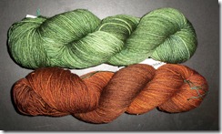 Then I got String Theory’s Continuum sock yarn from Simply Socks. This is a wide striping sock yarn. It’s really cool and I love the colors. I got Dark Matter (purple and black) and Little Ghost Nebula (orange and black for Halloween).